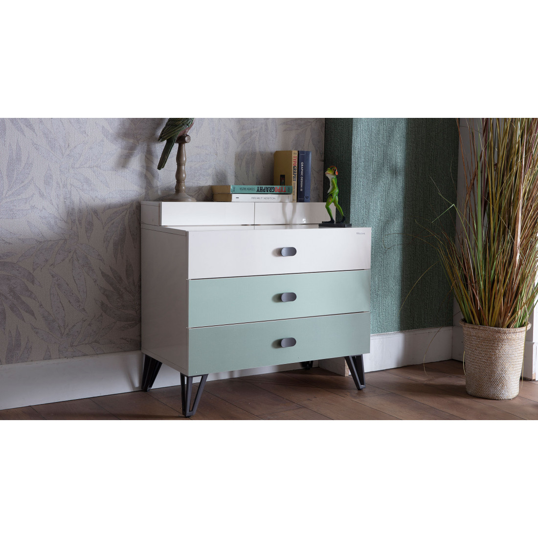 ВЕРХНИЙ ЯЩИК ЦВЕТА СЛОНОВОЙ КОСТИ, СРЕДНИЙ ЯЩИК СВЕТЛО-ЗЕЛЕНЫЙ,НИЖНИЙ ЯЩИК ТЕМНО-ЗЕЛЕНЫЙ.