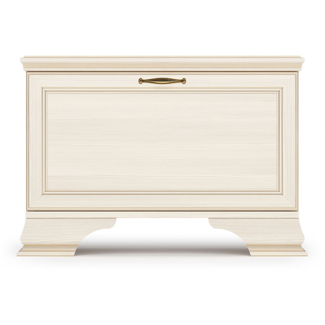 Коллекция производится в текстуре «бодега белый» с эффектом золотого патинирования. Облик «Сиены» дополняют рамочные фасады и карниз в классическом стиле, а также эффектные опоры из МДФ. Мебель комплектуются металлической лицевой фурнитурой премиум-класса в цвете «старая бронза» и надежной крепежной фурнитурой.